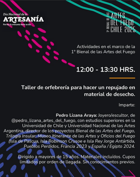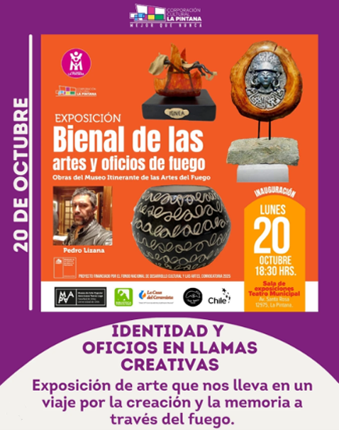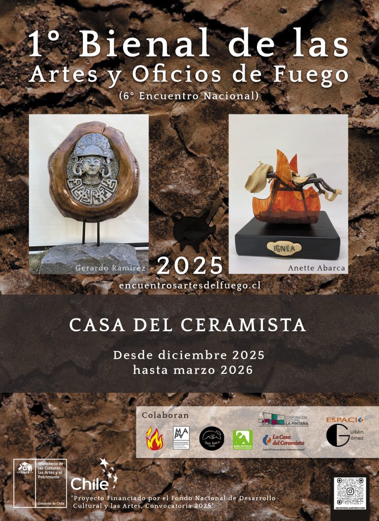 La 1ª Bienal de las Artes del Fuego Chile 2025 se consagra como el evento que reúne a artesanas y artesanos nacionales vinculados a distintos oficios milenarios en torno al fuego. Contempla una serie de actividades de transmisión de oficios y, además, un concurso participativo con un premio de incentivo a la creación.