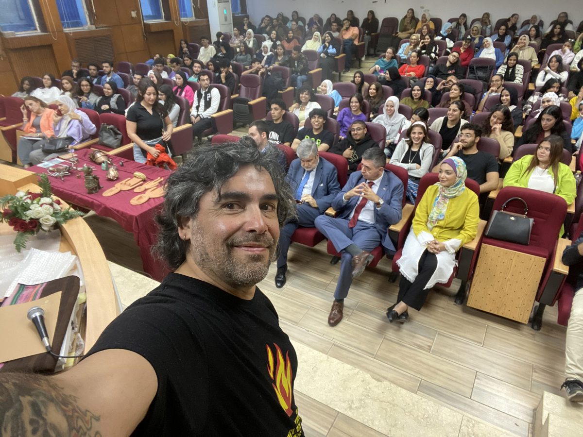 Reconozco que me cuesta seguirle el ritmo: hoy está en Santiago, mañana en Talca, luego en Buenos Aires o incluso en Egipto, siempre entre exposiciones y viajes.